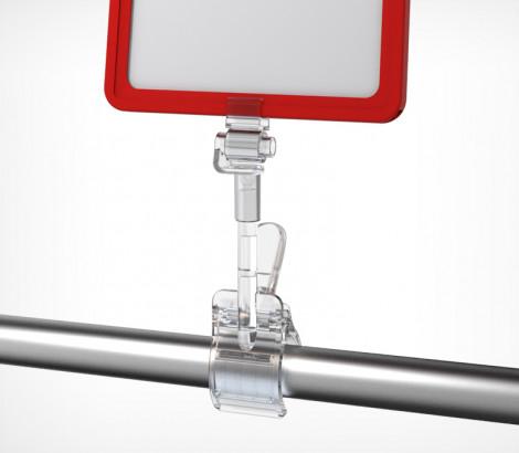 Универсальный держатель-прищепка для крепления пластиковых рамок на различных видах поверхностей.  Соединение в паз, обеспечивает надежную возможность регулировки угла наклона и положения рамки.