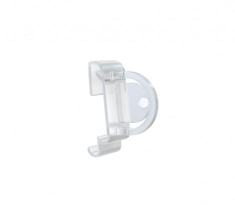 Универсальный держатель рекламных стопперов UNI-CLIP-R — клипса для крепления рекламных стопперов на полочный ценникодержатель высотой 26, 30 и 39 мм и на край некоторых видов полок. Позволяет зафиксировать рекламный материал перпендикулярно к полке. Клипса используется с рекламными стопперами из ламинированного картона или тонкого пластика толщиной до 1,0 мм. Рекламная вставка хорошо держится в клипсе благодаря штырьку, который попадает в отверстие на стоппере и таким образом обеспечивает его надёжную фиксацию.