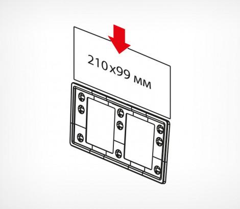 Универсальная рамка-ценникодержатель с девятью гнездами крепления рамки на разных уровнях относительно полки. Прорезь для рамки по широкой стороне рамки. Размер вставки - 210×99 мм (1/3 формата А4).