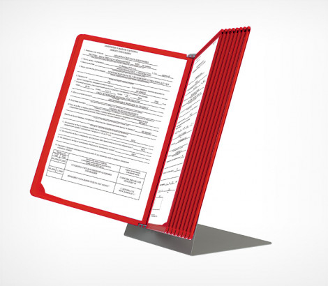 Комплект настольной перекидной системы «INFOLINE-ECO» с рамками «INFOFRAME» для размещения информации формата А-4 вертикально. Информация легко меняется.