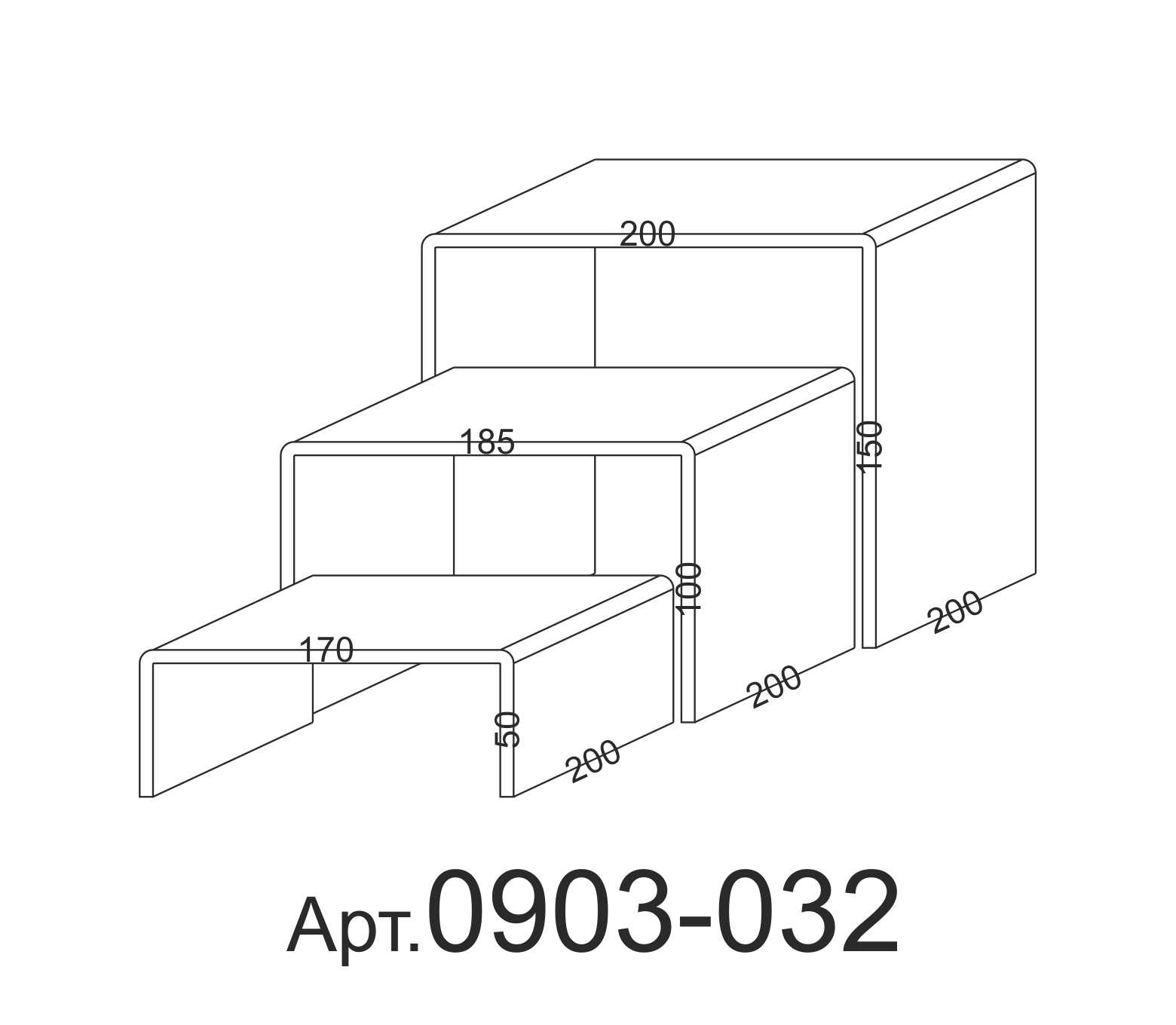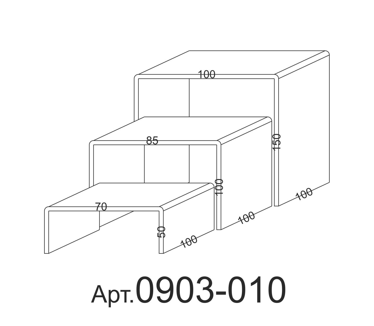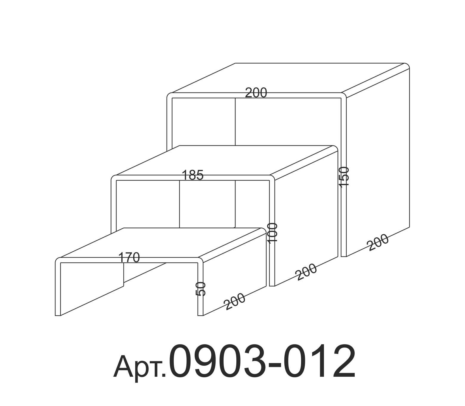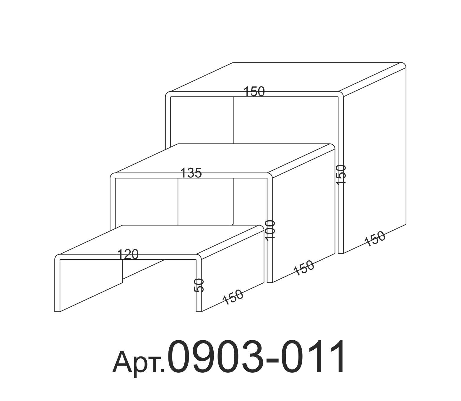 Комплекты подставок различных размеров. Комплект состоит из трех подставок, подставки вкладываются друг в друга. Размер определяется по верхней части, каждая следующая подставка меньше размером на величину толщины стекла.