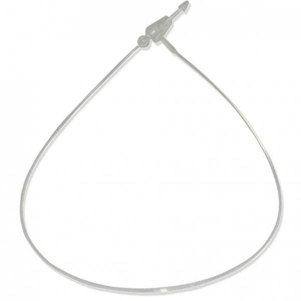 Хомут  для подвешивания ценников, этикеток, полиэтиленовых карманов ПВХ. Распространенное крепление на различной продукции.  Защелкивается в специальную петлю.  Предназначен  для одноразового использования.