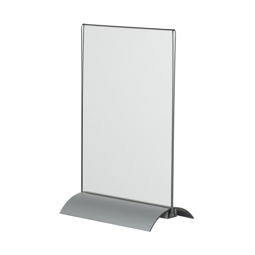 Менюхолдер на подставке из алюминиевого профиля, придает особую технологичность изделию. Состоит из двух частей, планшета из оргстекла 1.5 мм. и специального алюминиевого профиля. Информация легко меняется.  Изделие отлично держится на поверхности.