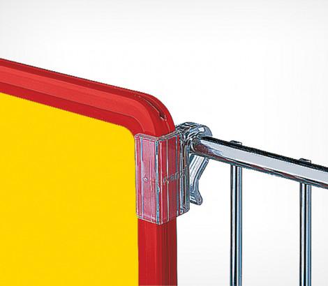 Клипса для крепления рамок на проволочную корзину. Закрепляется с боковой стороны рамки. Для подвешивания одной рамки необходимо два крючка разной ориентации (правый и левый). Максимальный диметр проволоки, на который может быть закреплена клипса - 8 мм.